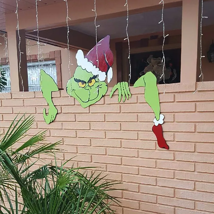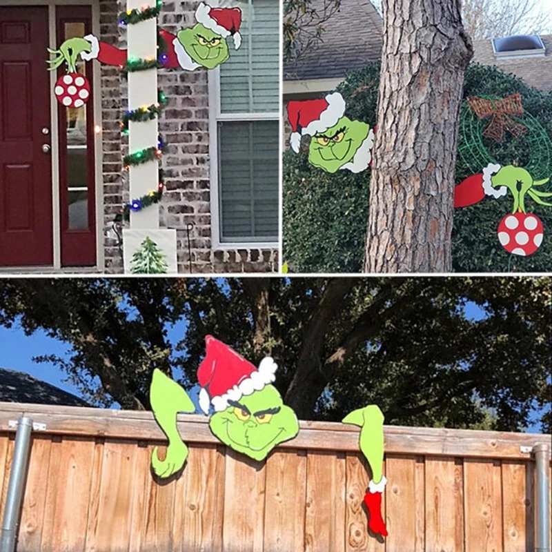 [Уникальный дизайн] при установке зеленой руки и головы на рождественскую елку вы обнаружите, что зеленый меховой Монстр появляется с рождественской елки, держа красный шар в руке, показывает вам плохую улыбку.