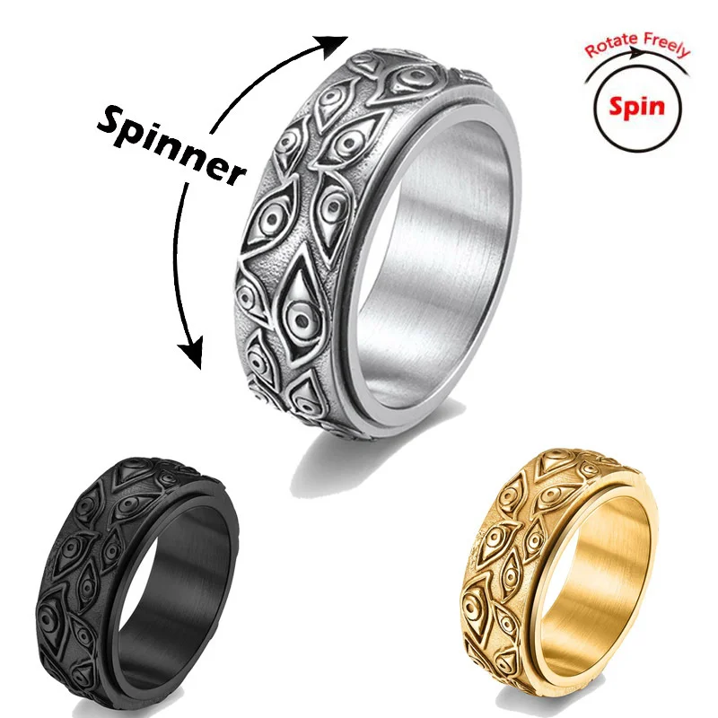 Вращающееся кольцо из нержавеющей стали в новом стиле, ретро Божьи глаза, неправильной резьбы, мужское кольцо, подарочное ювелирное изделие для вечеринки (Размер: 7-13)