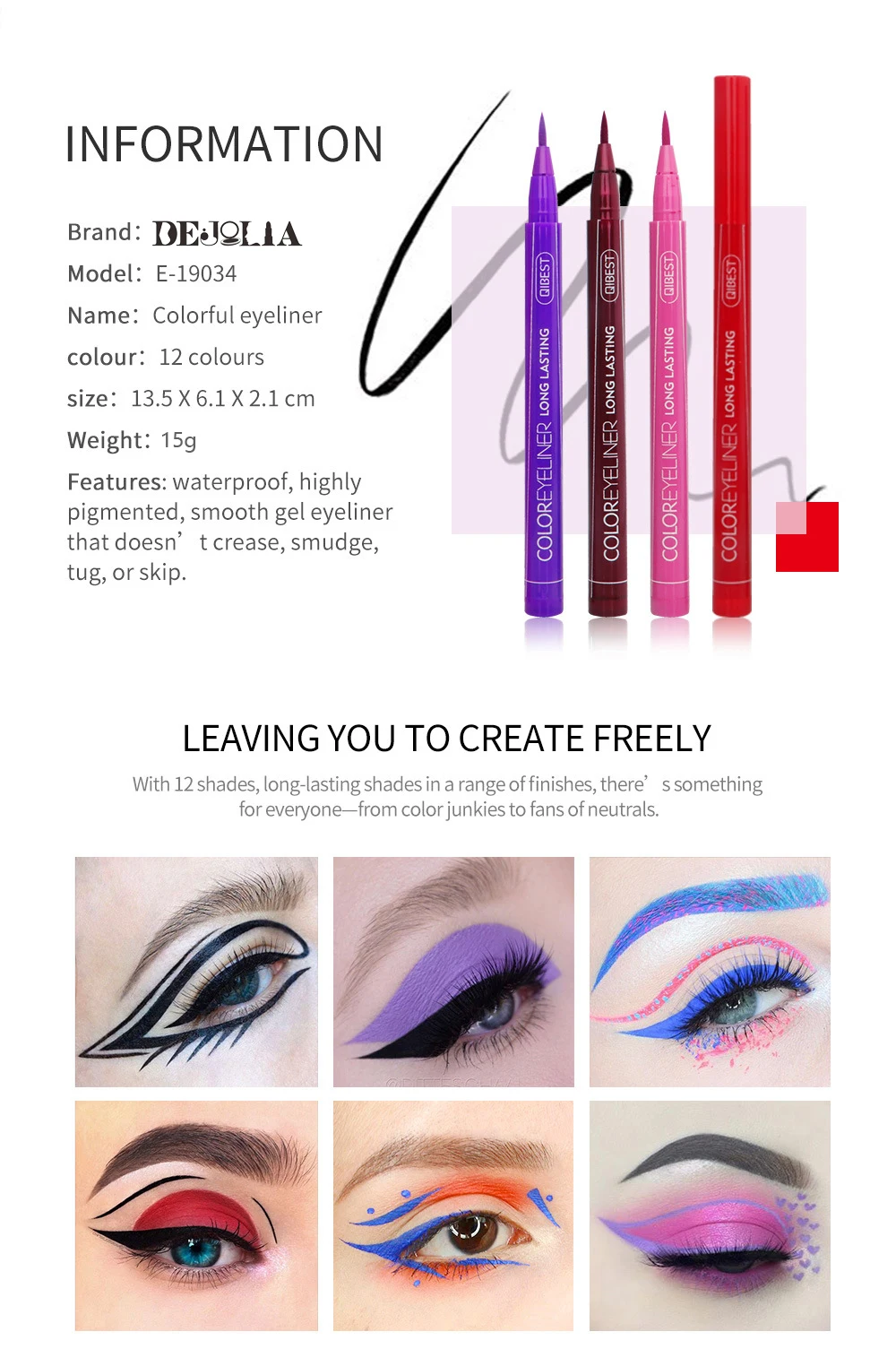 Жидкая подводка для глаз, 12 цветов, водостойкая, легко наносится, ...