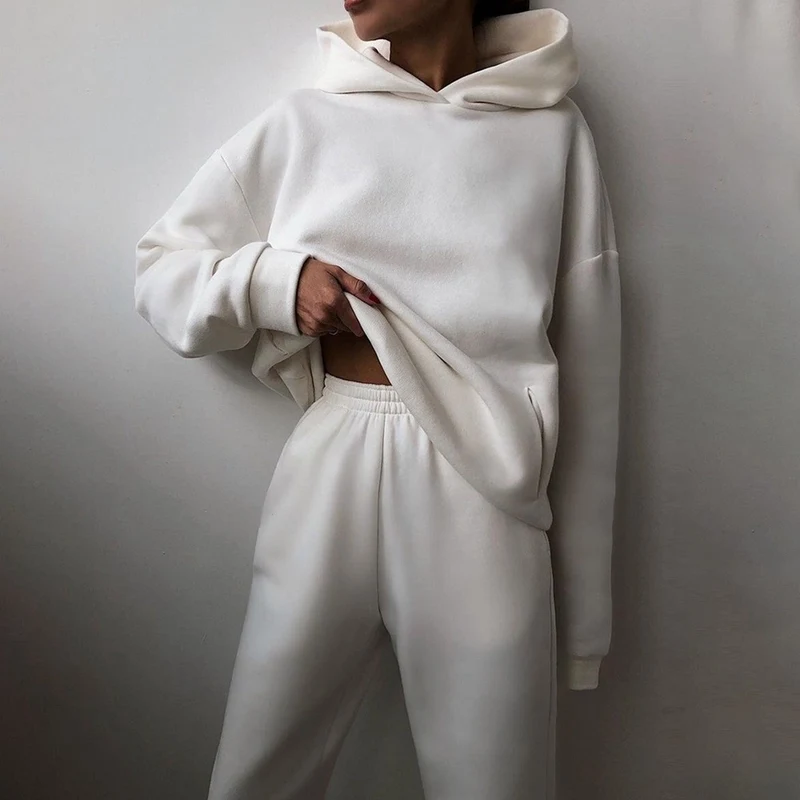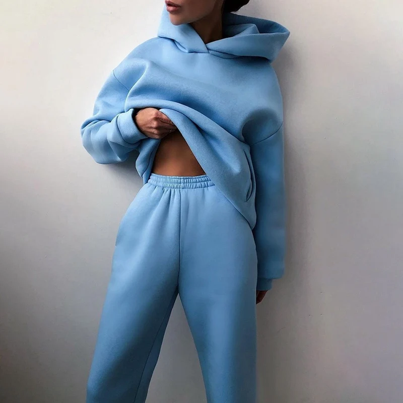 Женский спортивный костюм, толстовка с длинным рукавом, теплый однотонный костюм из двух предметов с толстовкой и брюками, Осень-зима 2021, спортивный комплект одежды