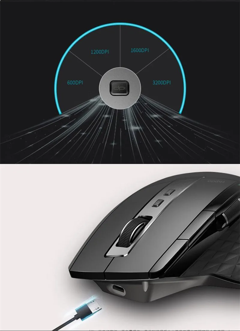 Беспроводная мышь Rapoo MT750PROW, перезаряжаемая многорежимная мыш...