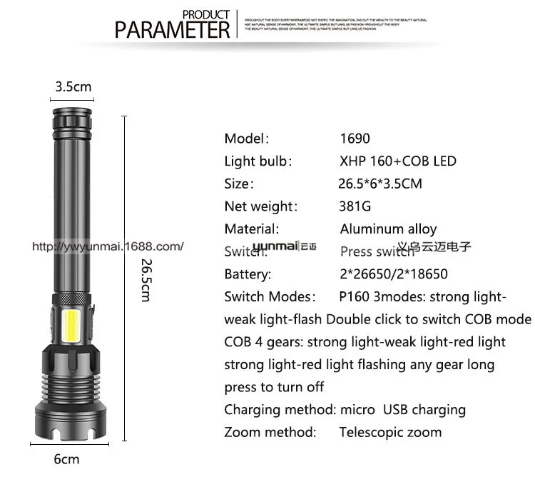 Шестерня: главный светильник 3: сильный светильник-слабый светильник-мигающий двойной щелчок для переключения режима cob