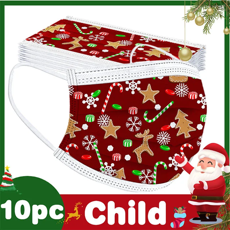 Рождественские детские одноразовые промышленные 3 слойные ушные Петли 10 шт маска для лица