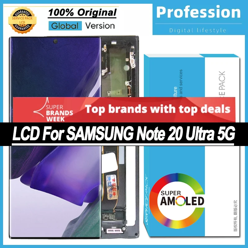 100% Оригинальный 6,9 ''дисплей + рамка для Samsung Galaxy Note 20 Ultra 5G N986F N986B ЖК сенсорный экран Запасные части + Сервисный пакет