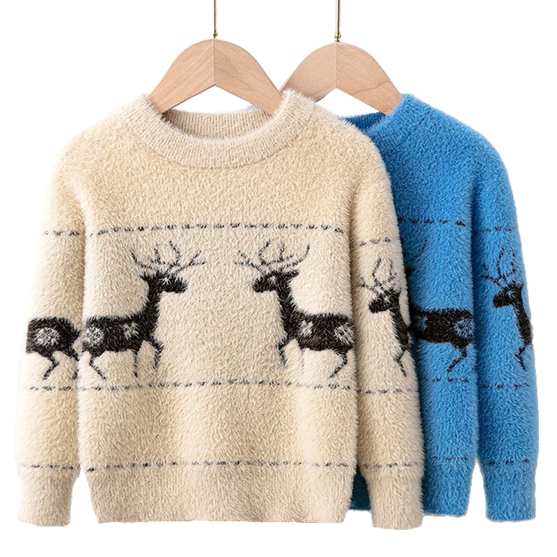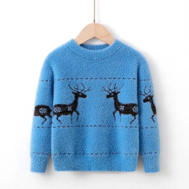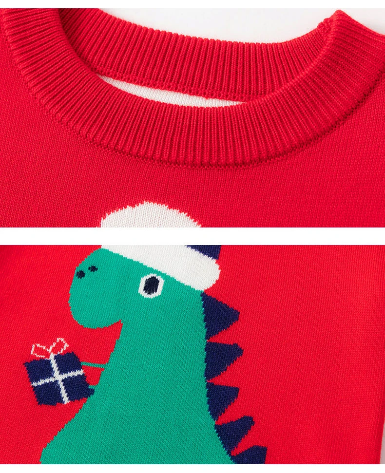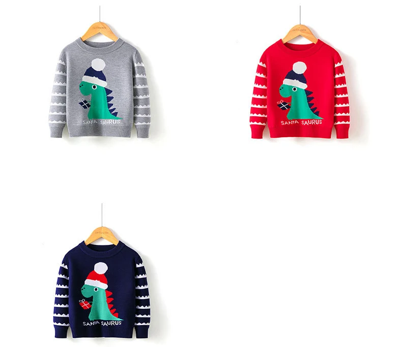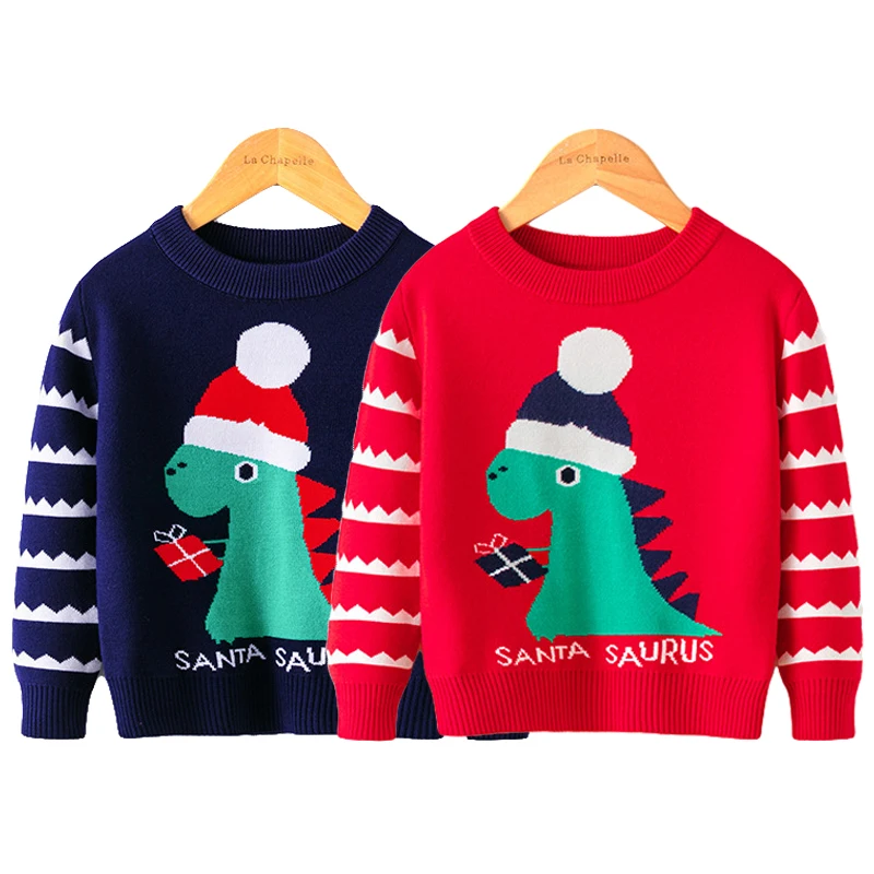 Рождественский свитер с динозавром для девочек и мальчиков, Детские Зимние Теплые Топы с длинным рукавом, одежда для мальчиков и девочек, праздничный детский вязаный свитер унисекс
