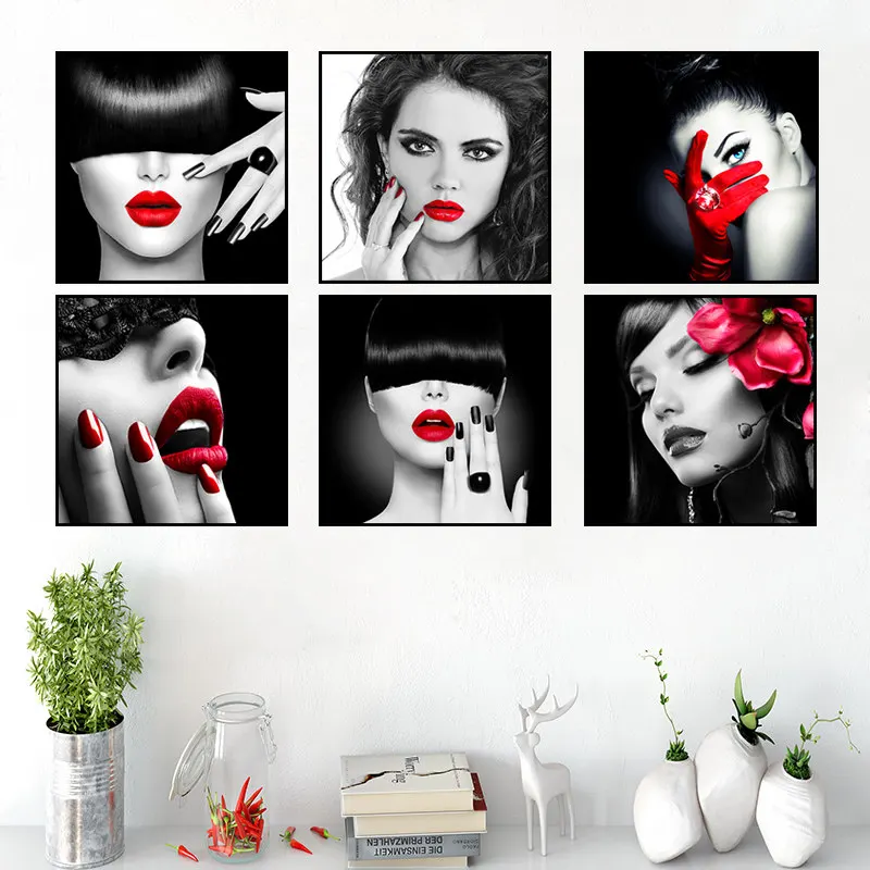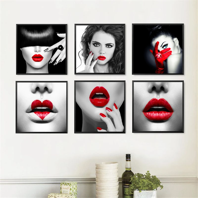 Современный модный постер с сексуальными красными губами для женщин, маникюр, макияж, спа, салон красоты, магазин красоты, Настенный декор, холст, живопись, художественные принты