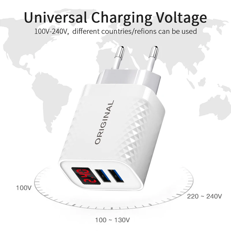 Зарядное устройство с двумя USB-портами и светодиодным дисплеем, 3,0