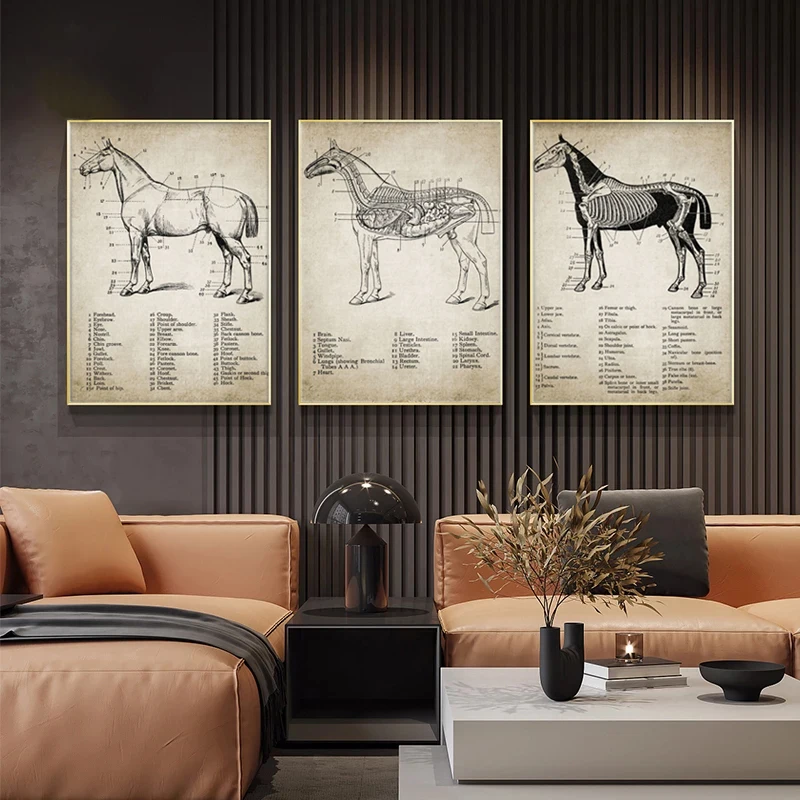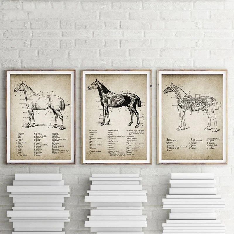 Винтажные холщовые плакаты с изображением лошадей, иллюстрация лоша...