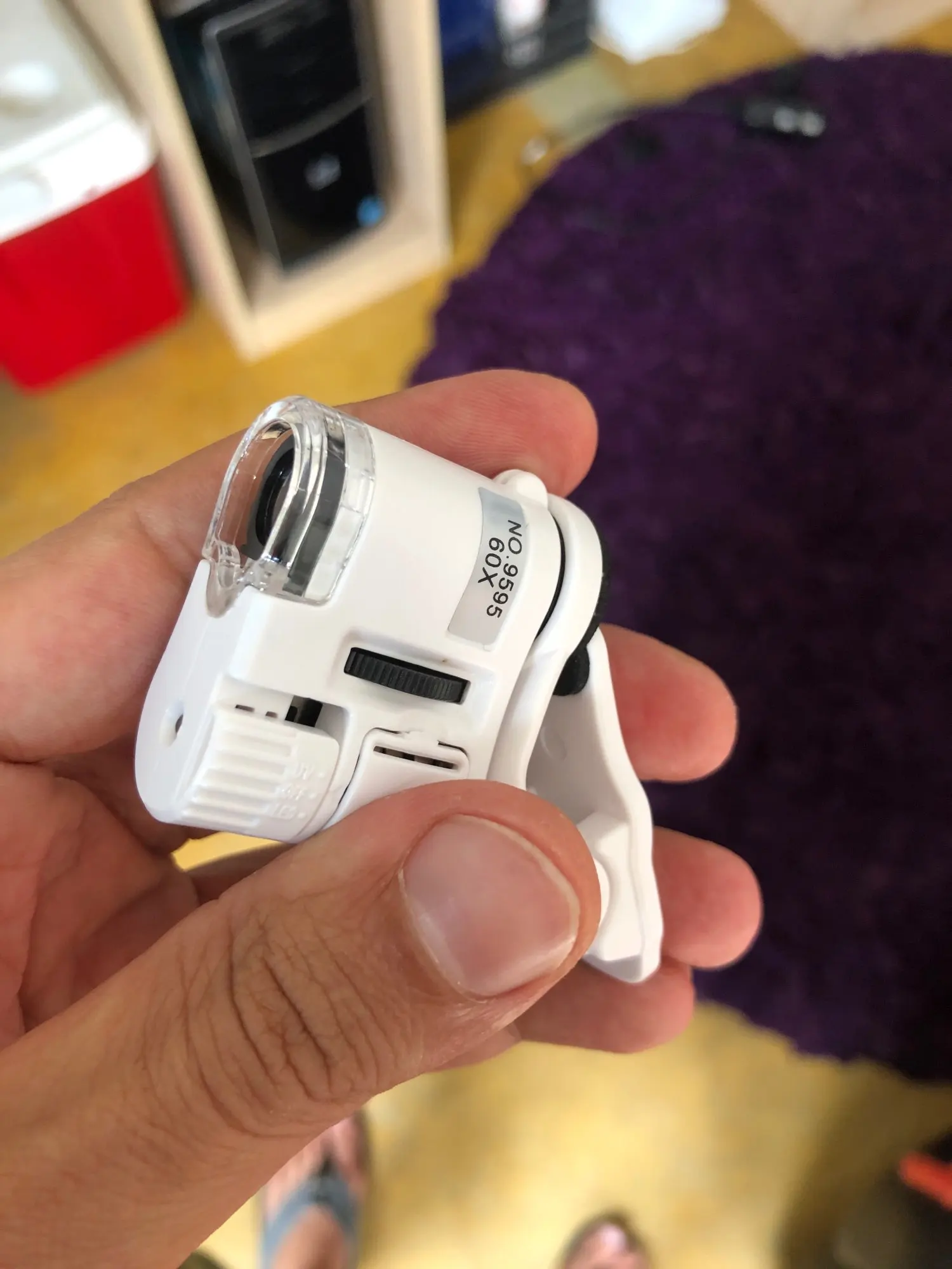 Используйте Съемный зажим для быстрого и легкого подключения к камере телефона. С специальной крышкой микроскопа для мобильных телефонов, он может быть просто подключен к объективу камеры мобильного телефона;Светодиодный светильник. Яркий светодиодный светильник увеличительного стекла может обеспечить достаточный светильник в любом тусклом состоянииКарманный размер легко носить с собой, вы можете использовать его в любое время и в любом местеОчень подходит для промышленности, печатной платы и печати, промышленности, садоводства, монет, марок, ювелирных изделий, идентификации, образования, географии, дома и офисаМатериал изделия: АБС-пластик. Акриловые оптические линзыВес изделия: 44 г (включая упаковку)Размер изделия: 11*6,4*2,7 смУвеличение продукта: 60 разПодсветка светильник источник света: 1 светодиодный светильник, 1 Ультрафиолетовый детектор светильник