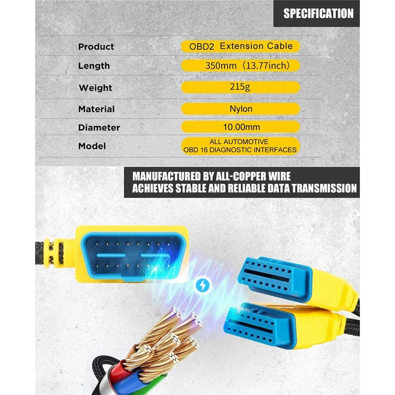 OBD2 1-2 Удлинительный кабель-Общая длина: 35 см/13,77 дюйма, obd-2 нейлоновый Удлинительный кабель диаметр: 10 мм (толще, чем обычный удлинитель)Передача данных-использование технологии многониточного соединения данных для защиты от помех и безопасности, что делает ее более быстрой для передачи данных и более стабильной работы.Доступ к 2 стереосистемам-1-2 разветвителя, разветвитель сигнала: Разветвитель позволит разделить один БД порт на 2 БД порта (Гнездовой), которые могут быть стерео доступны.Высококачественный материал-снаружи кабеля, мы используем новые материалы TPT и укрепляем нейлоновый материал, который является экологичным, нетоксичным, гибким и герметичным.Размер: длина 350 мм, диаметр: 10 ммМатериал: нейлонЦвет: желтыйПосылка:1 х Кабель-адаптерТолько вышеуказанная посылка, другие товары не включены.Примечание: светильник и различные дисплеи могут привести к тому, что цвет товара на картинке немного отличается от реального. Допускается погрешность в измерениях +/- 1-3 см.