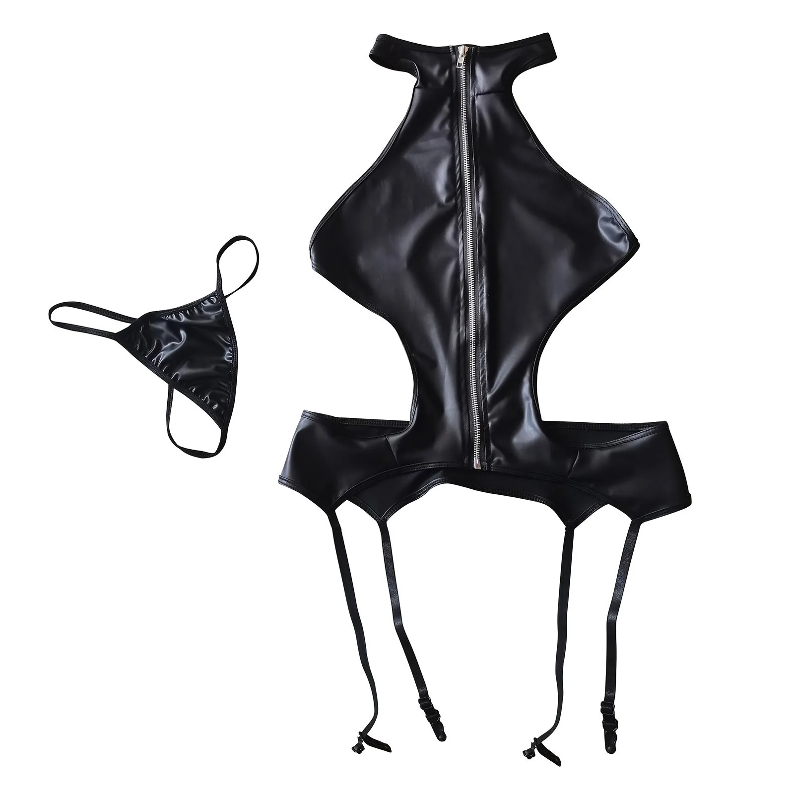 Женский облегающий ремень без стального кольца на молнии из лакированной кожи, цельное сексуальное нижнее белье, костюм из 2 предметов