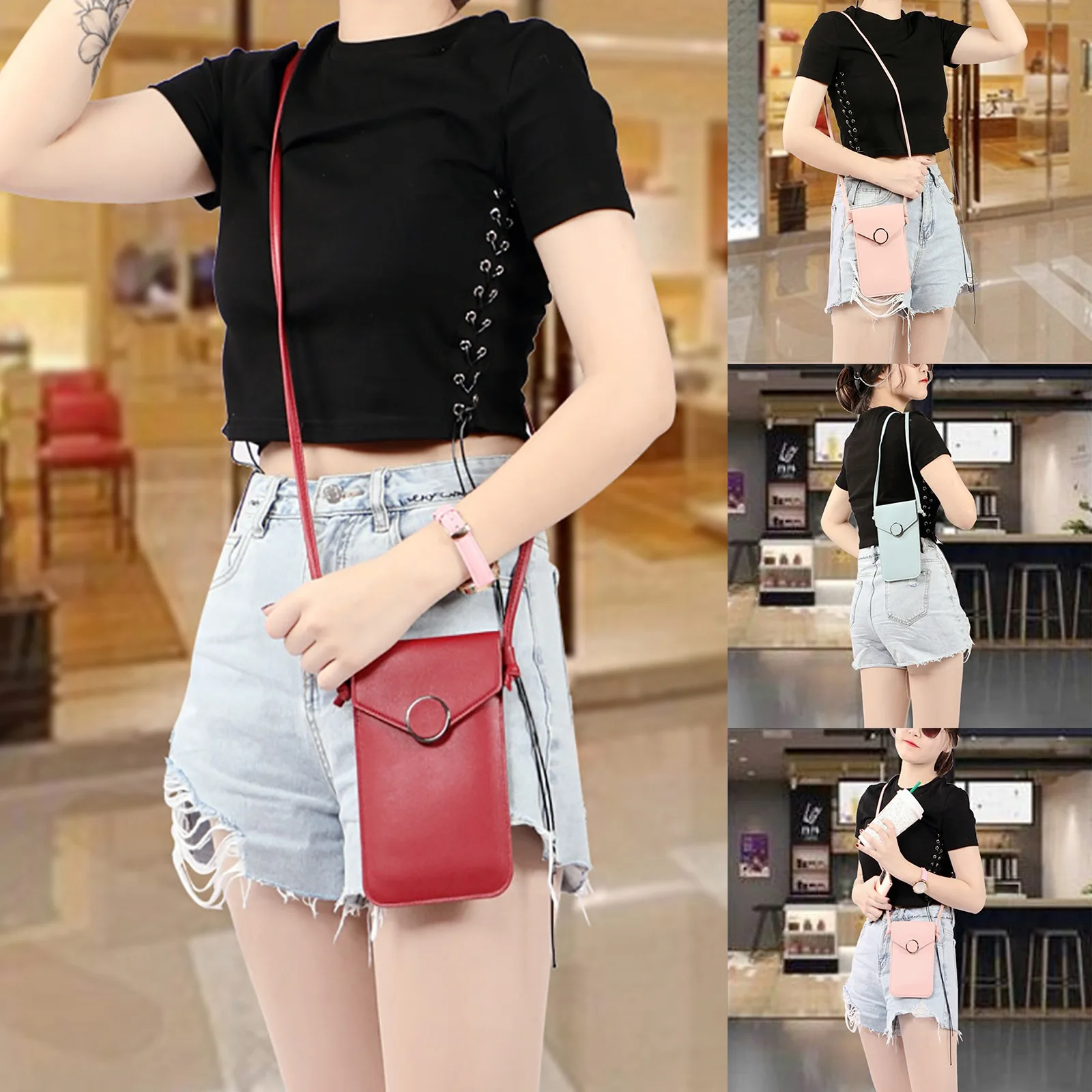 Женский однотонный кошелек 2021, кожаный ремешок на плечо, женская ...
