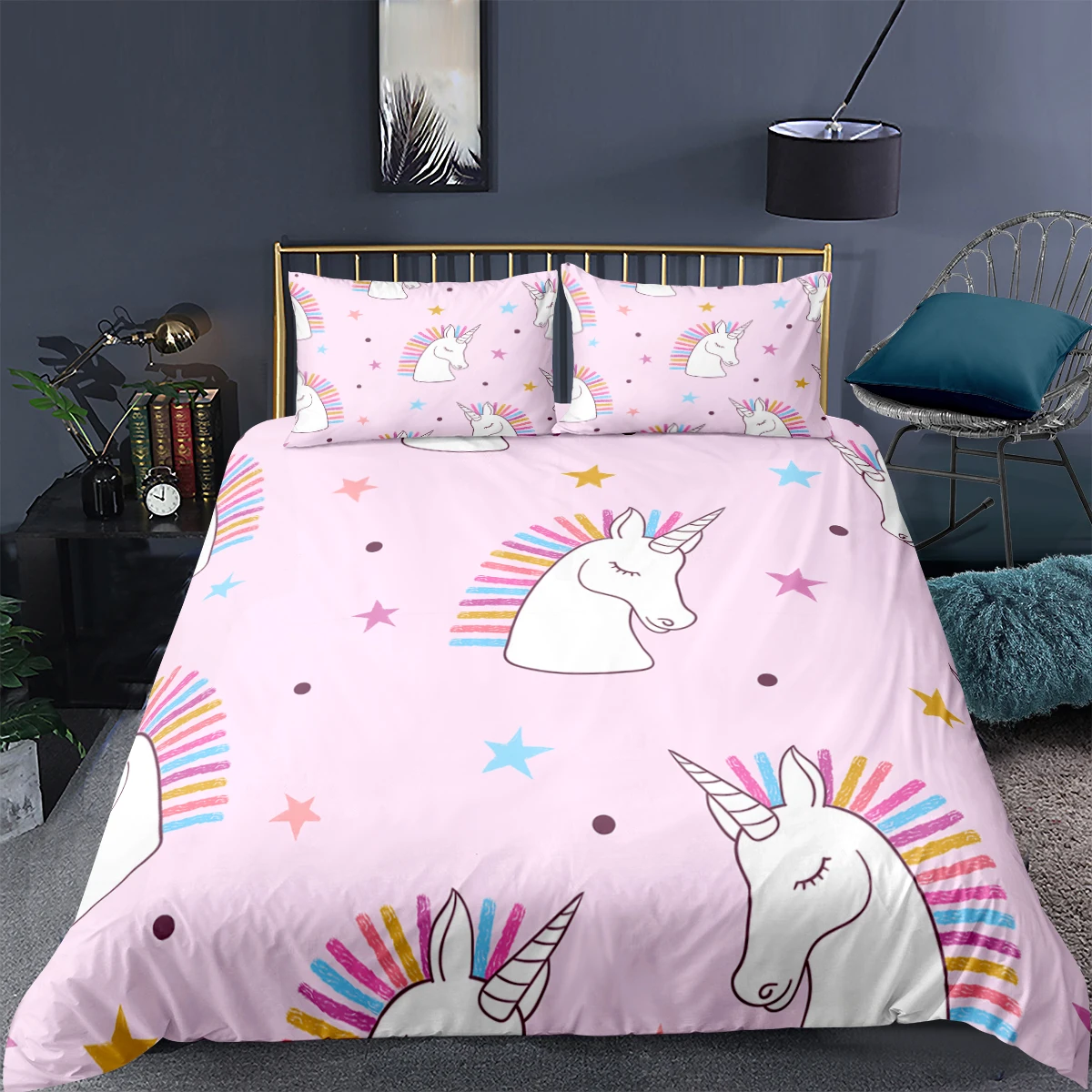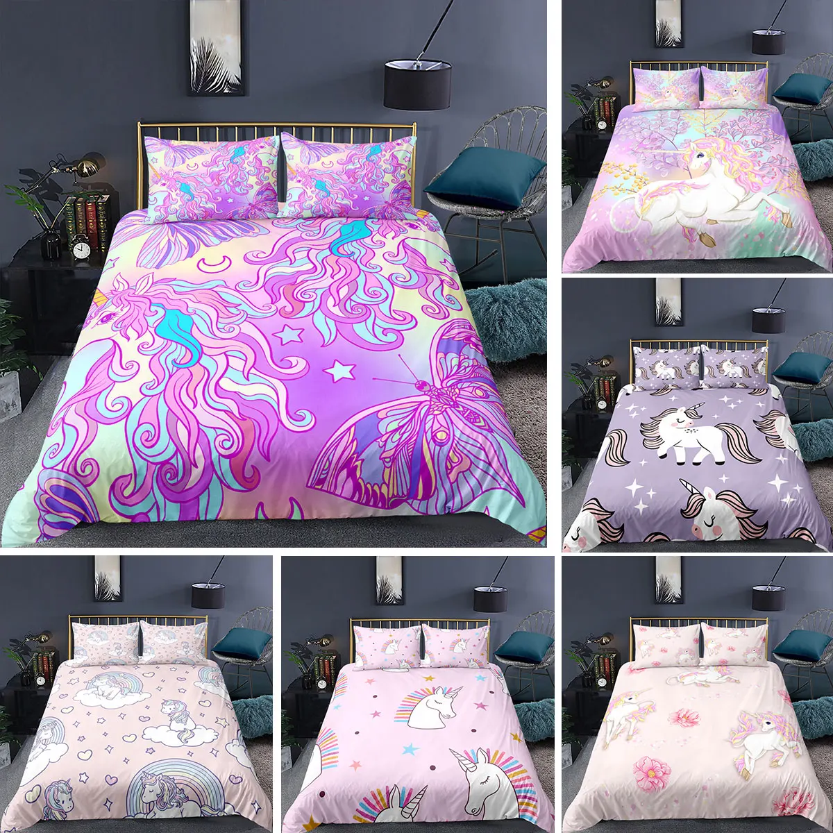 Комплект постельного белья для детей, девочек, с 3d-рисунком единорога, покрывало и наволочка, полиэстер, постельное белье, пододеяльник 180