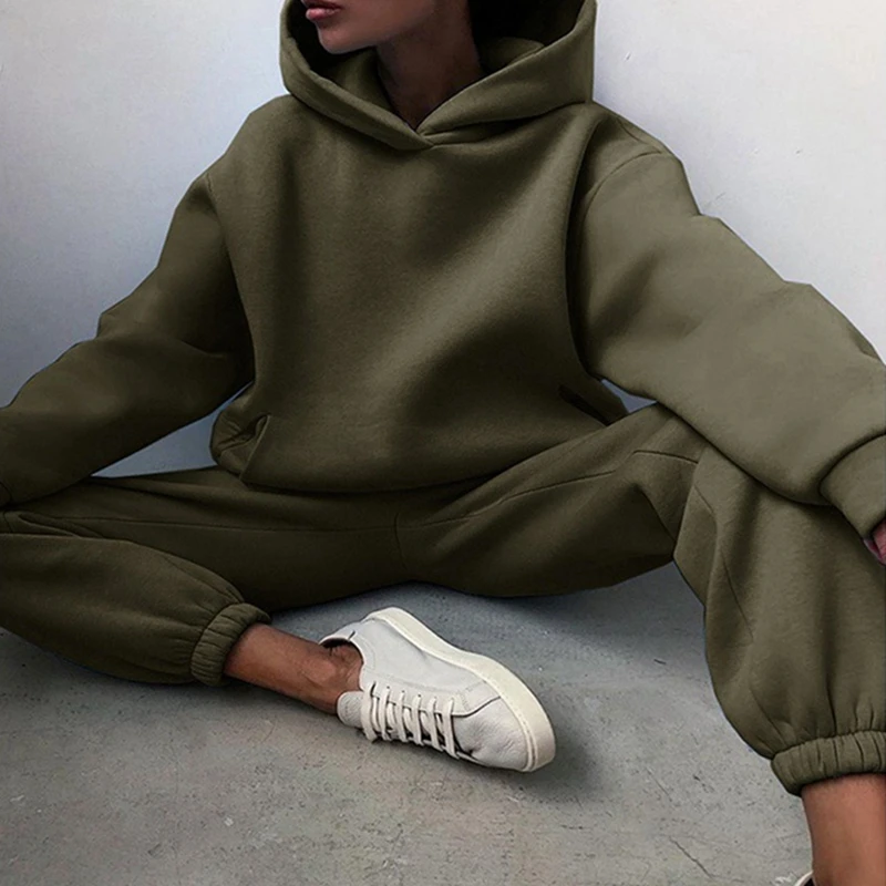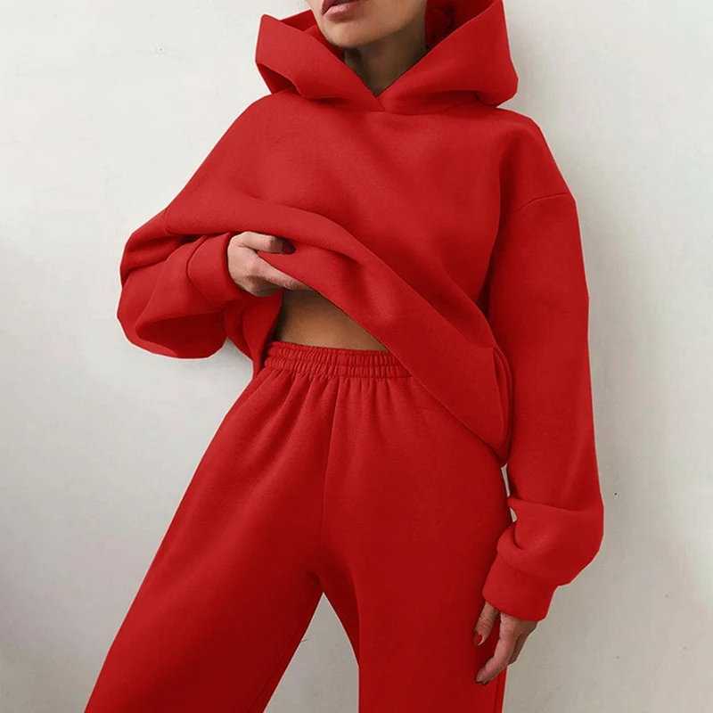 Новинка 2021, женские элегантные однотонные костюмы, теплые толстовки и длинные брюки, модные комплекты из 2 предметов, Толстовка Оверсайз, спортивный костюм