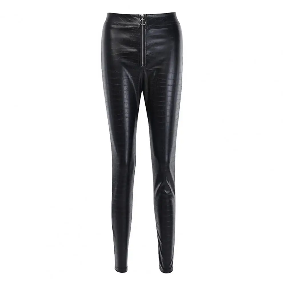 Элегантные брюки из искусственной кожи с высокой талией, эластичные облегающие брюки для вечерние, повседневные облегающие брюки, сексуальные женские брюки для ночного клуба