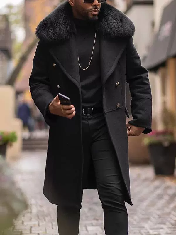 Мужская зимняя куртка на флисовой подкладке, с меховым отворотом