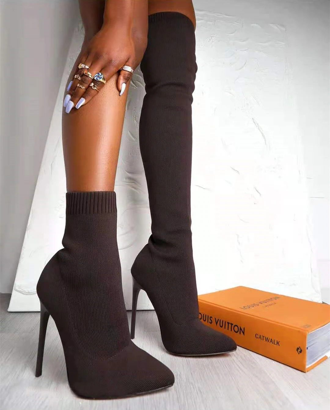 Новинка Осень-зима 2021, ботинки-носки на высоком каблуке, женские ...