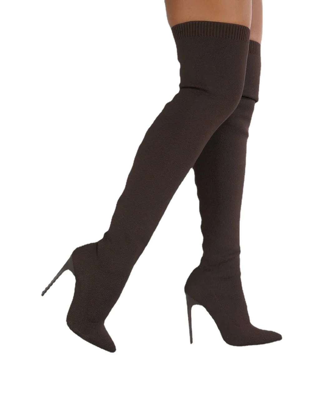 Женские вязаные эластичные ботинки на высоком каблуке, Зимние ботил...