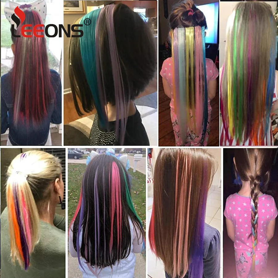 Синтетические длинные волосы 10 шт.Лот Красочные прямые волосы на одной заколке для наращивания на заколке 20 дюймов Радужный цвет для девочек