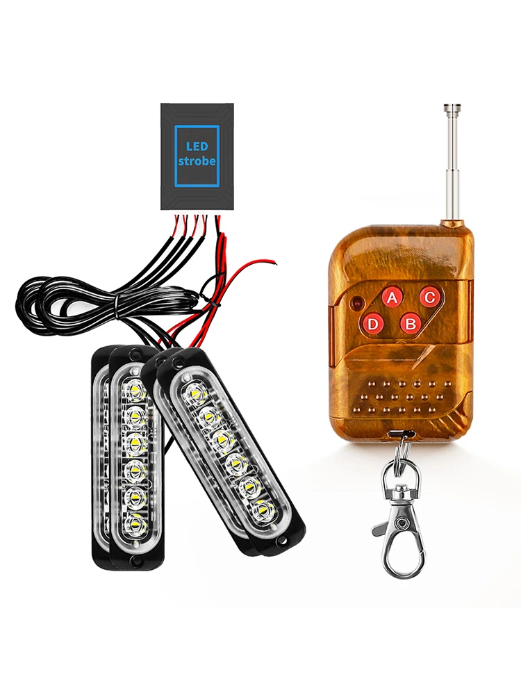 АвариПредупреждение светодиодный световой сигнал 4 в 1, 12-24 В, 6 светодиодный ных стробоскосветильник, Янтарныйбелый с пультом дистанционного управления, световая решетка для полицейских, грузовиков, лодок