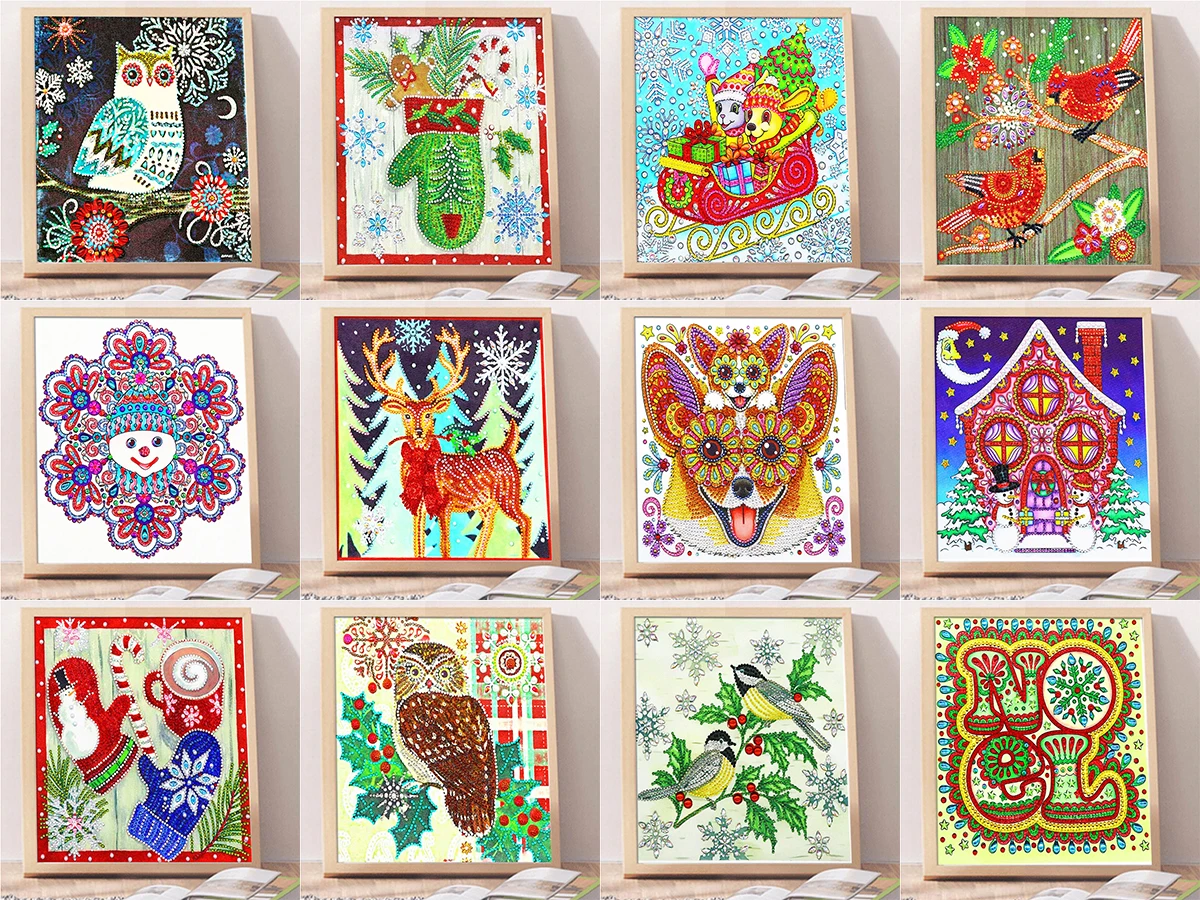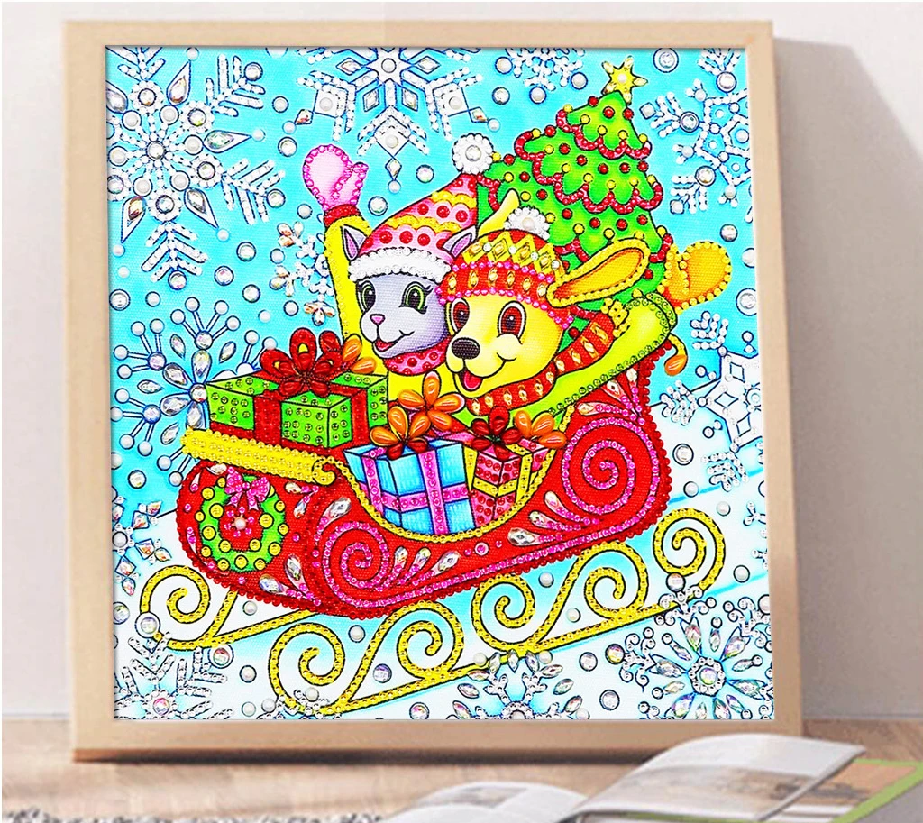 Алмазная 5D картина, Мультяшные животные, Рождественский пейзаж, специальная форма, алмазная вышивка, мозаика, украшение для дома, рождественский подарок