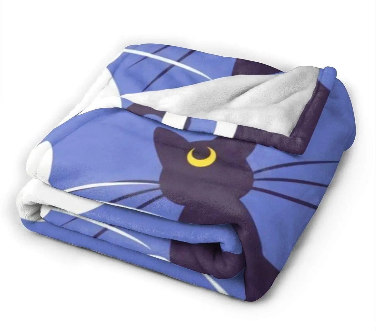 Флисовое одеяло с милыми котятами и луной, мягкое легкое покрывало для кровати, дивана, гостиной, подходит для всесезонных поездок