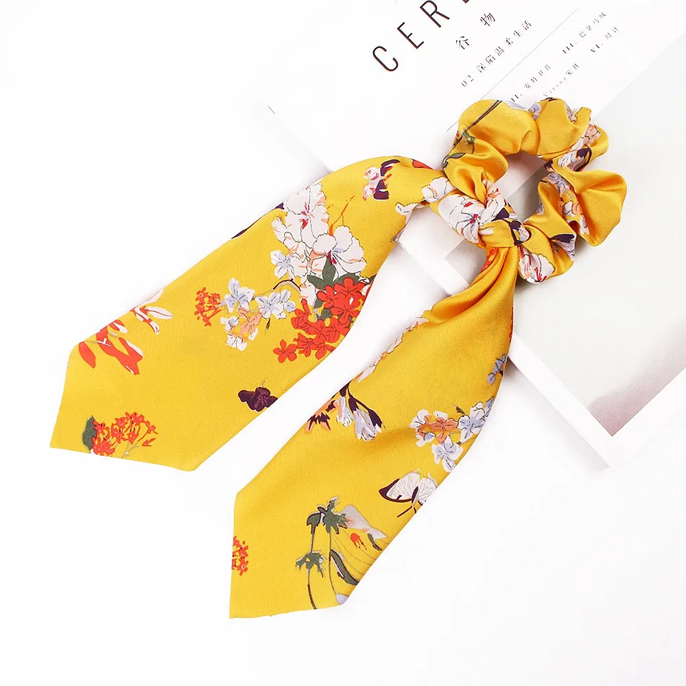 Женский атласный шарф для волос с цветочным принтом, эластичная пов...