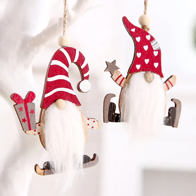 Деревянные рождественские украшения, безлицевая гномовая кукла, рож...