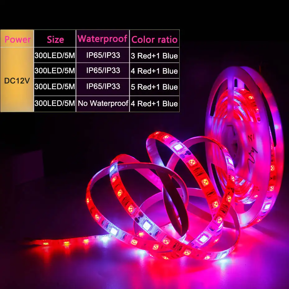 Степень защиты IP: IP65/IP20Светодиодный да: SMD 5050Количество СВЕТОДИОДНЫЙ Дов: 60 светодиодный Дов/мЦвет: красный и синий (красный: синий = 3:1 или 4:1 или 5:1)Длина светодиодный Ной волны: Красный 660 нм; Синий 450 нмНапряжение: 12 В постоянного токаМощность: 8 Вт/м, 36 Вт/5 мДлина: 5 м (Светодиодная лента спаяна из частей, упакована по 5 м, без проблем с качеством)Особенности:Энергосбережение с более высоким уровнем эффективности. HPS,HID,MH, лампы накаливания и галогенные лампыПолный спектр необходимых и важных для роста и цветения растений (от посадки до сбора)450 нм Синий и 660 нм красный ускоряет рост листьевКрасный цвет 660 нм способствует цветениюИдеально подходит для ящика для выращивания, палатки для выращивания, гидропоники «сделай сам», бонсая, сада и т. д.Удобные, гуманные и высокоэффективные