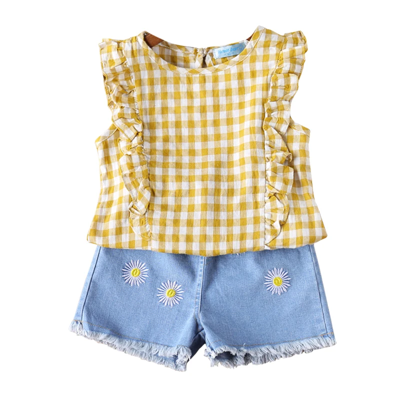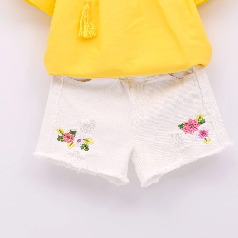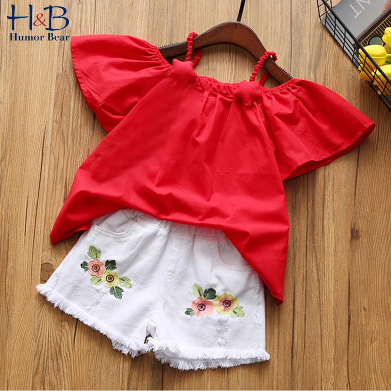 Костюм Humor Bear для девочек, Летний Новый Топ без рукавов + шорты с вышивкой, комплект из 2 предметов, одежда для маленьких девочек