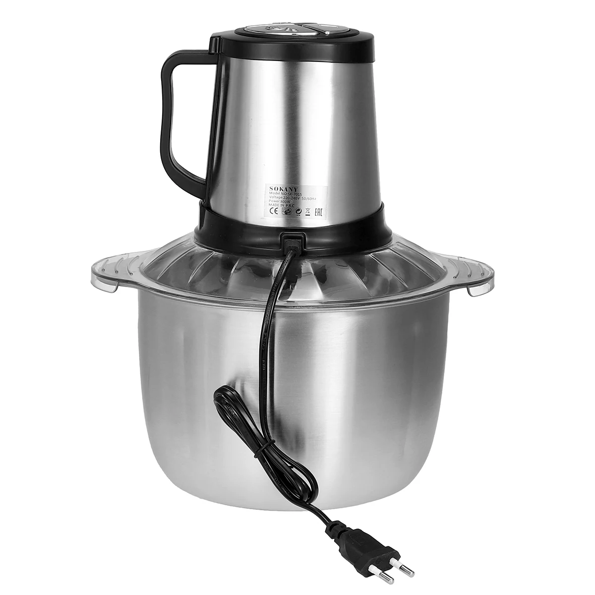 Особенности:-Утолщенная чаша из нержавеющей стали: пищевой материал, здоровье и гигиена-Мощный двигатель: сильная мощность, низкий уровень шума, сокращение времени смешивания, очень вкусный-Тонкий стальной сливовый вал: Прочная износостойкая, гладкая работа, не легко носить, уменьшает шум от бега-Противоскользящая ручка: ручка, которая соответствует дизайну человеческого тела, с удобным захватом и нескользящей ручкой, что облегчает работу-Освободите руки: быстро достаньте мясо за 6 секунд, вы не устанете в ближайшее время, залейте свое мясо и наслаждайтесь едой.-Легко разбирается и легко чистится: кроме машинной головки нельзя мыть, другие аксессуары можно разобрать и очистить-3л/5л практическая Емкость: большой объем миски, и каждый раз, когда вы можете получить около 3 косточек мяса, вы можете легко держать ежедневные потребности семьи-Двухслойное s-образное тонкое стальное лезвие: спираль равномерно скручена, конструкция спирального дугового лезвия, усовершенствованные острые 4 лезвия, Двухслойное циклонное перемешивание, не нужно ждать-3 регулировка скорости: свободно Контролируйте тонкость, в соответствии с мягкостью и твердостью пищи, выберите шестерню, различные скорости могут производить различную тонкость-Широко используется: может сделать все виды деликатесов, мясного фарша, детского питания, приправ и т. д.Характеристики:-Материал: нержавеющая сталь + пластик