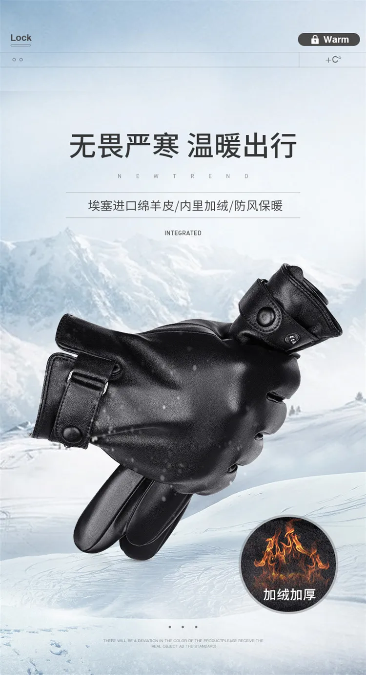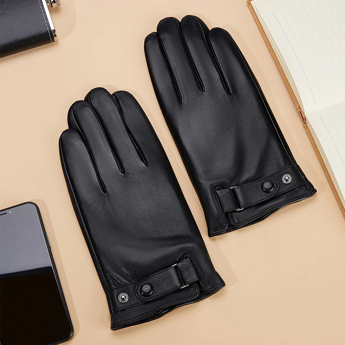 Перчатки мужские короткие из натуральной овечьей кожи, ветрозащитные, зимние, теплые