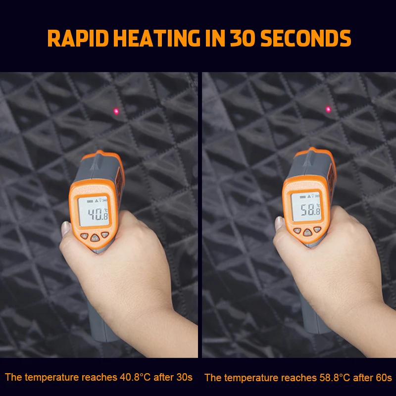 Особенности: -Высококачественная дышащая ткань, превосходное качество изготовления-Три толстых губки мягче-Высокопрочный нагревательный провод-Интеллектуальная тепловая защита-Новый дизайн подогрева, качественная вилка прикуривателя