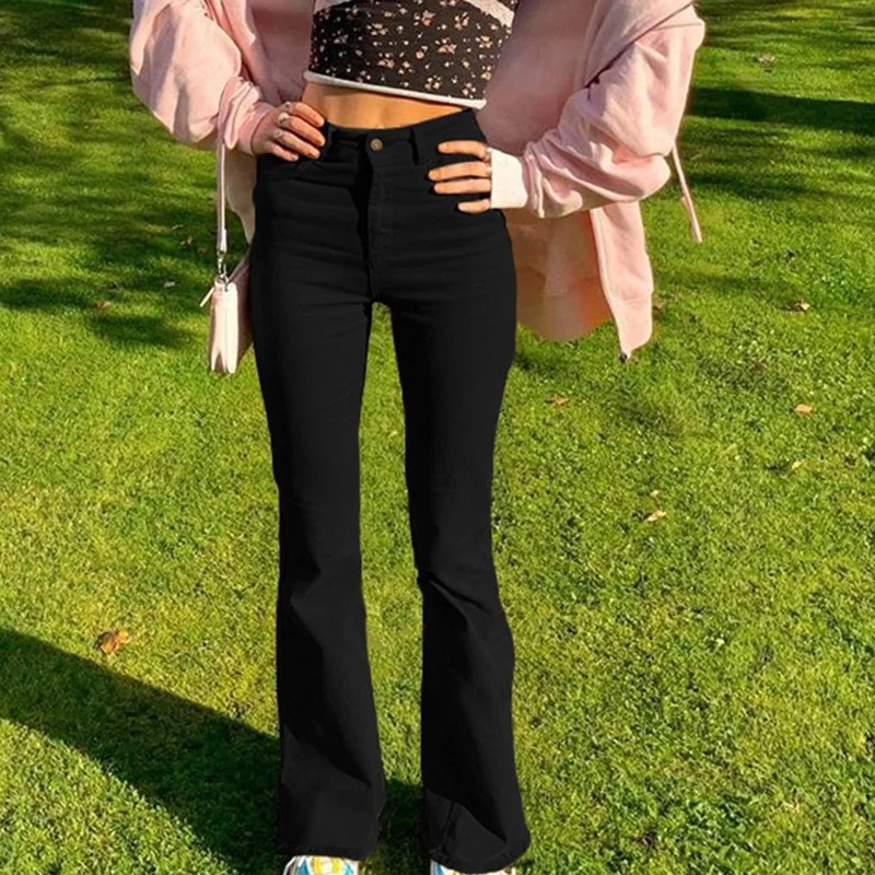 Джинсы-клеш Женские с завышенной талией, брюки-клеш цвета хаки, черные коричневые, уличная одежда