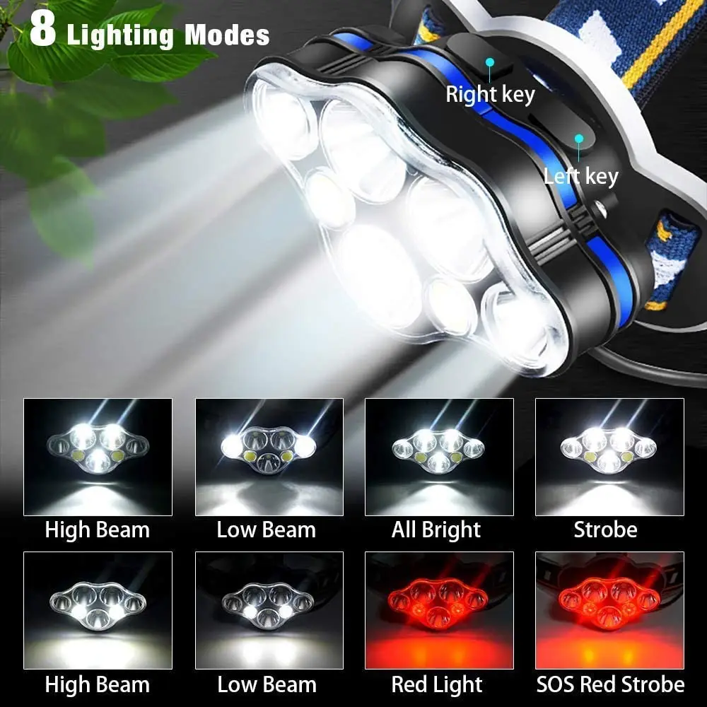 USB RechargeableHead Lamp, 8 Modes for Outdoor