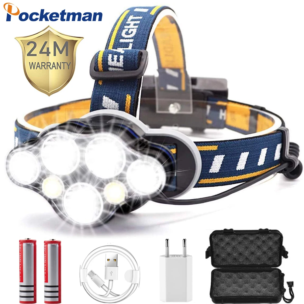 Мощный головной светильник USB Перезаряжаемые головной светильник 7 светодиодный головной светильник фара Водонепроницаемый Головной фонарь головки вспышки света светильник Фонари