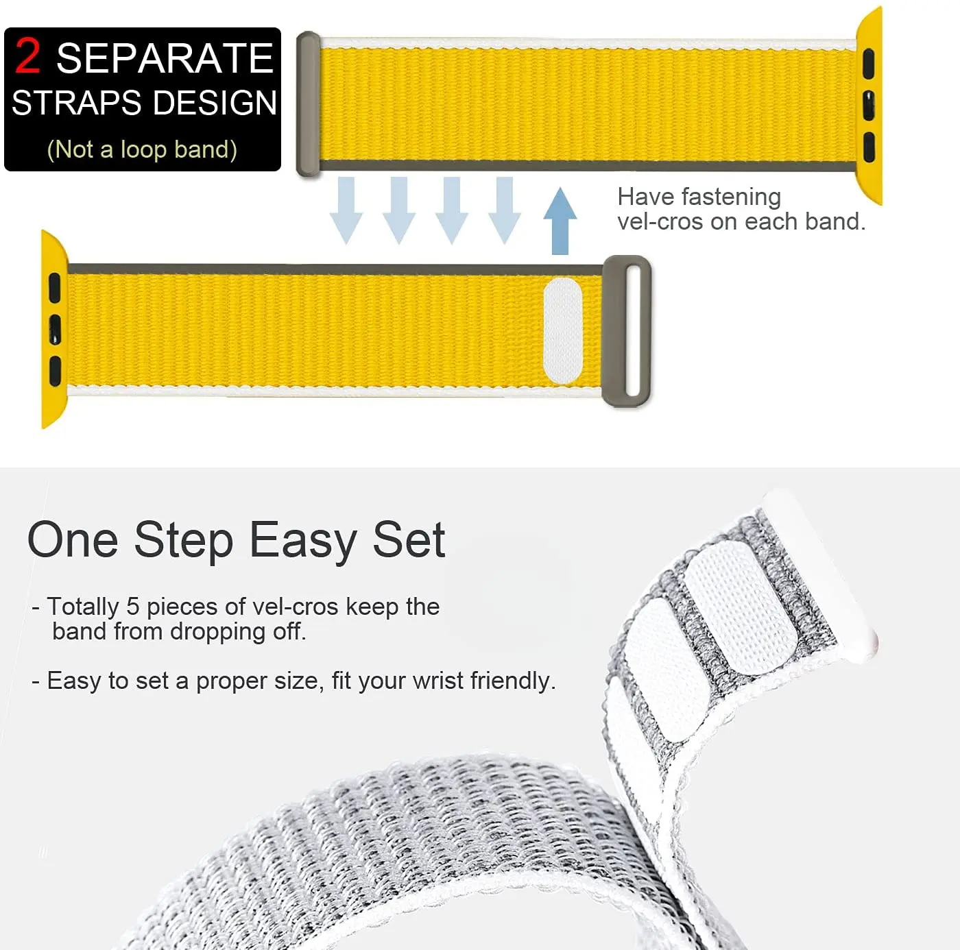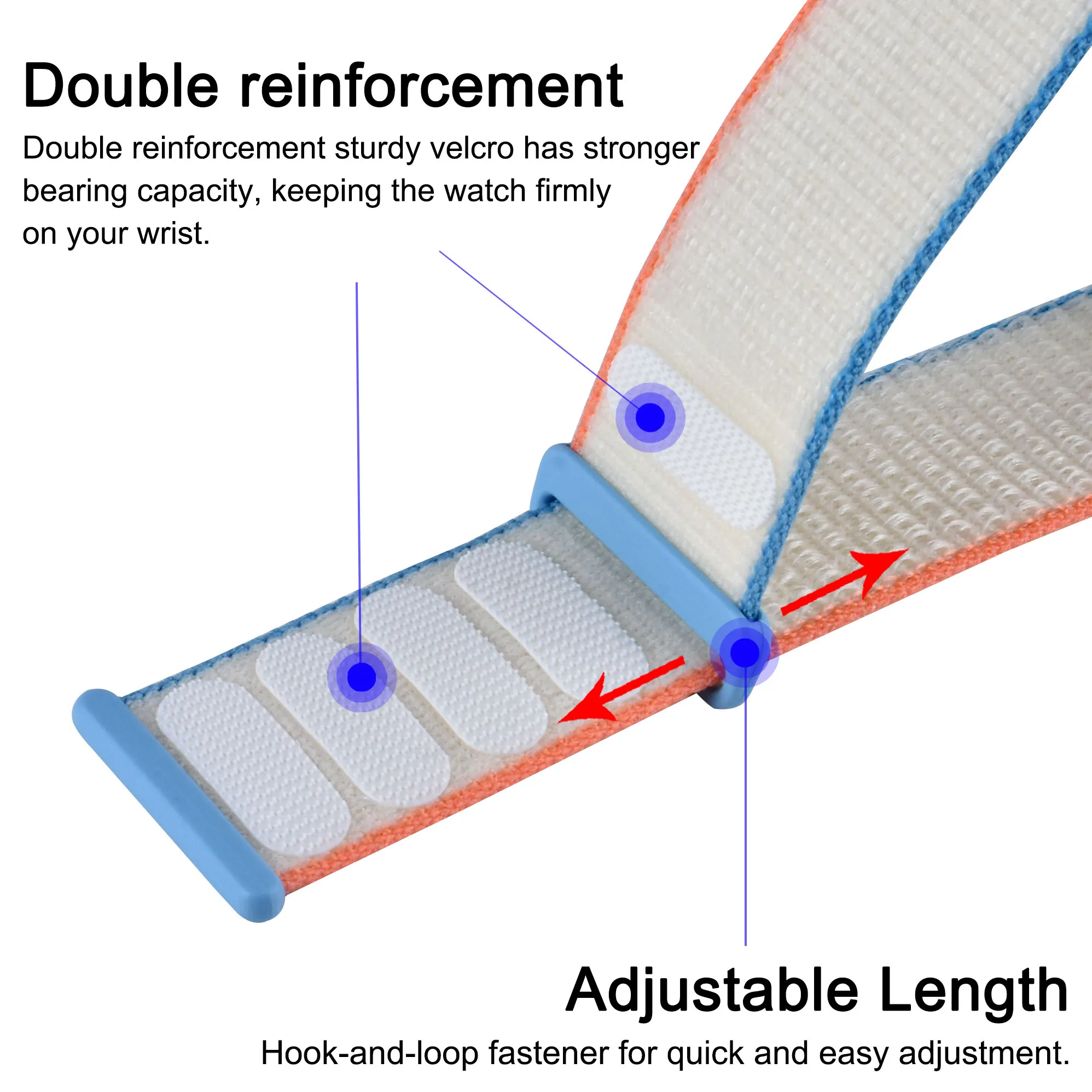 【Совместимость с Apple Watch & Safe】: регулируемые нейлоновые ленты на липучке, совместимые с iWatch series 6, SE, series 5, series 4, series 3, series 2, series 1, подходят для мужчин и женщин. После резки обоих концов ремешка в слот, они идеально встроены, чтобы защитить ваши часы от падения.