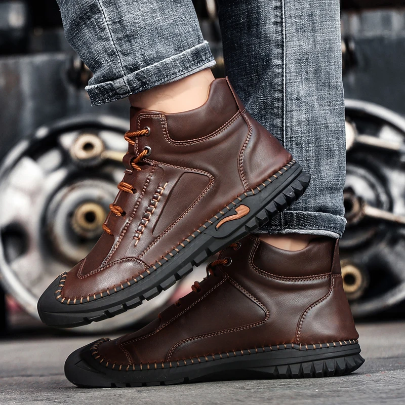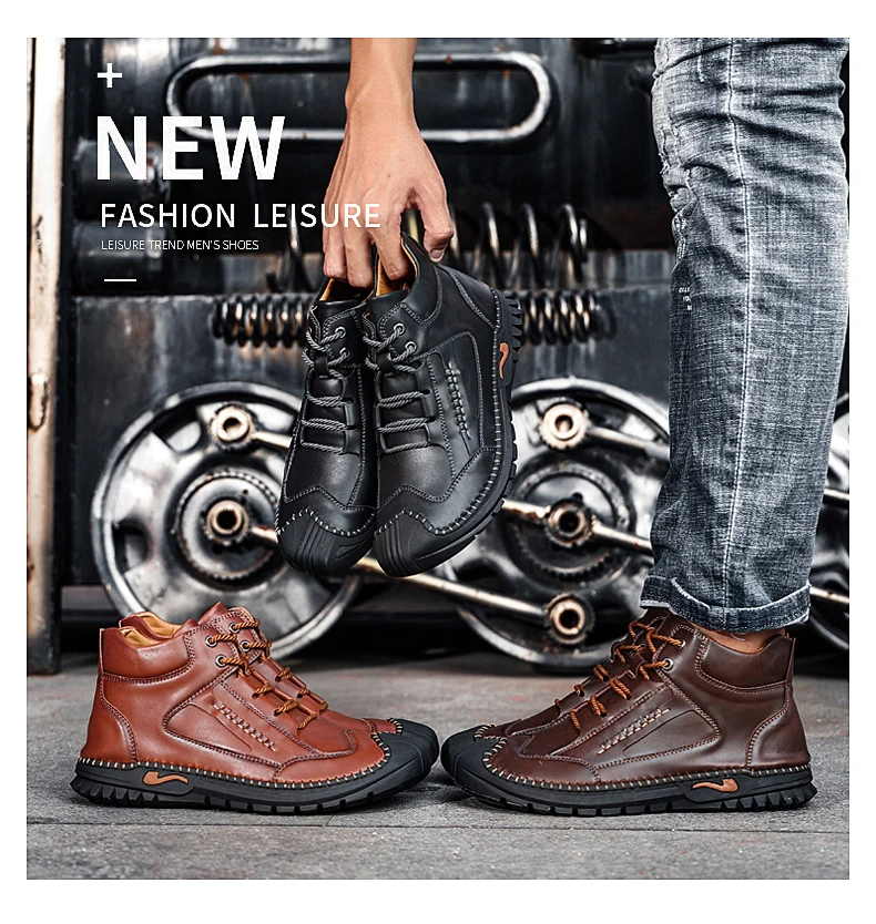 Мужские зимние ботинки с ручной строчкой кожаные ботильоны осенние уличные рабочие ботинки мужские повседневные кожаные ботинки