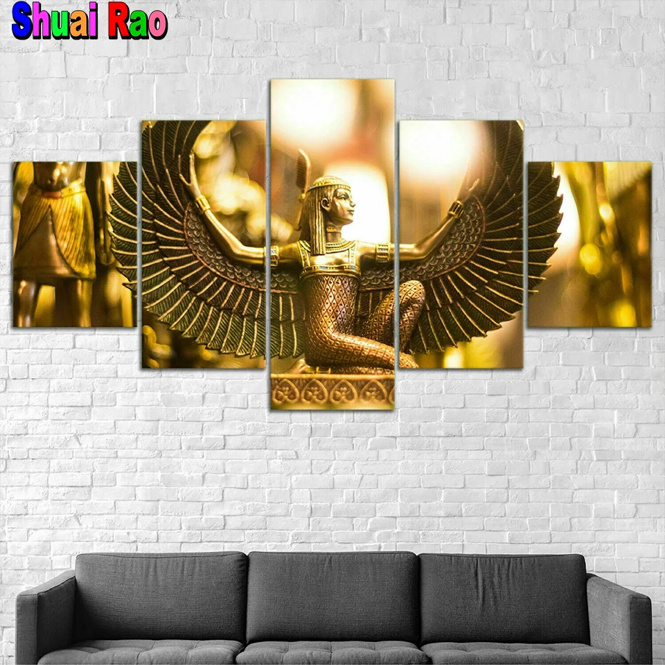 5 панелей, ИГИЛ, богиня, крыло, Египет, 5D, сделай сам, алмазная картина, мозаика, полная дрель, 5 шт., набор для алмазной вышивки, домашний декор