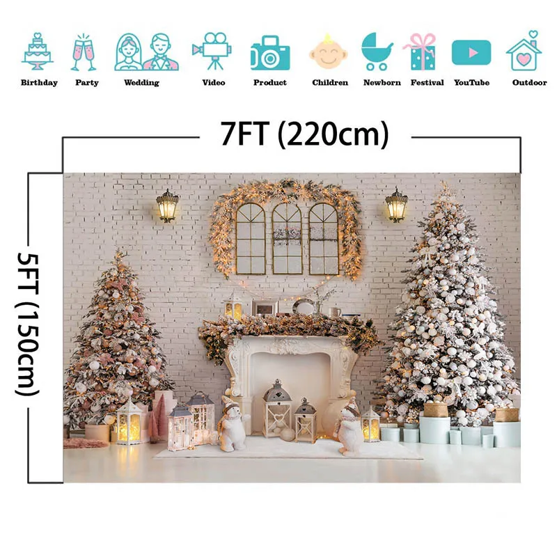 Фотофоны Рождественская елка камин подарок носок свеча белая декора...