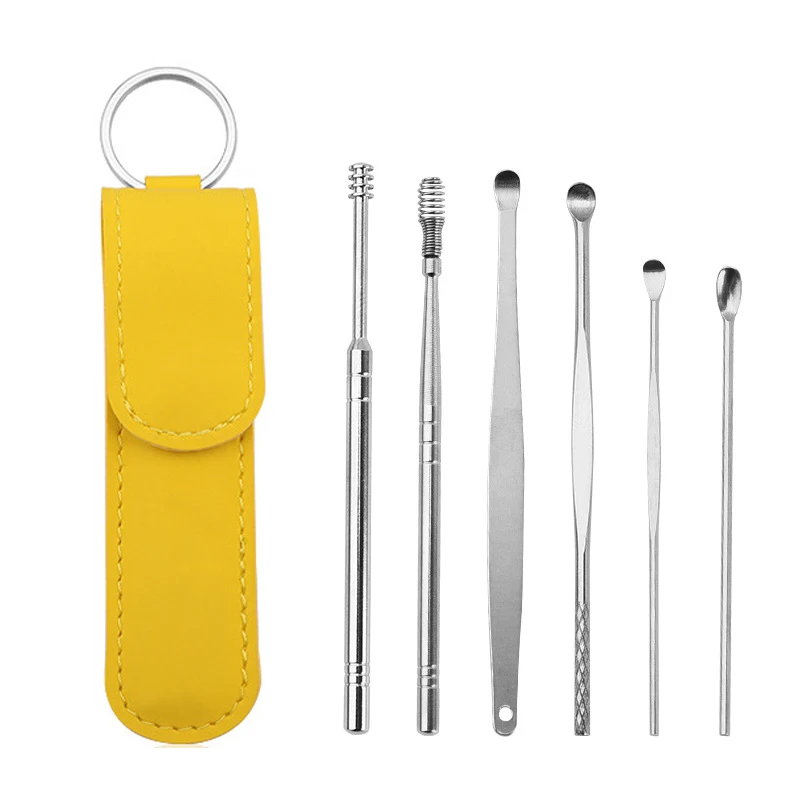 6 шт.набор, многоразовые приспособления для чистки ушей из нержавеющей стали