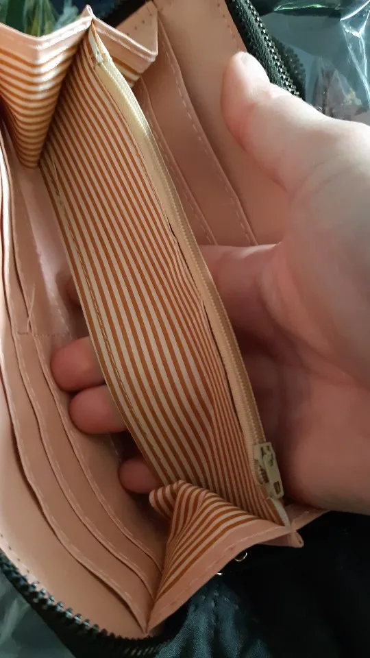 Хороший кошелек. Вместительный и красивый, приятный на ощупь. Единственное "но"- тугие замки-молнии. Надеюсь, что разработаются.