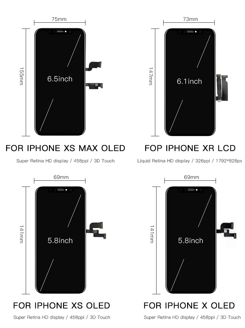 ЖК-дисплей с тачскрином для iPhone X, XR, XS, 11 Pro Max, 6S, 7, 8 ...