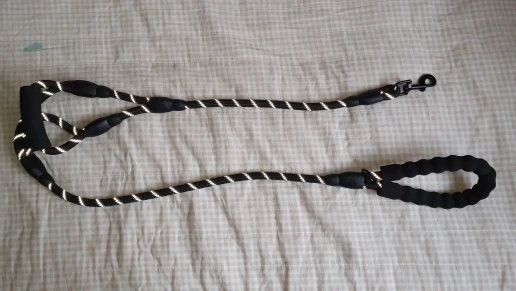 Классный поводок. Рекомендую всем, у кого тянет сильно собака. Кисть не сдавливается сильно за счёт удобной ручки. И если нужно взять на коротки поводок это очень удобно.