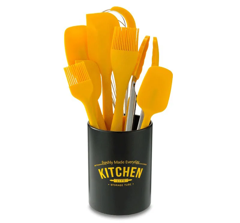 Желтая силиконовая посуда, термостойкий шпатель, масляная щетка, ве...