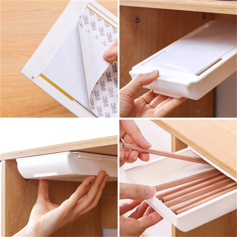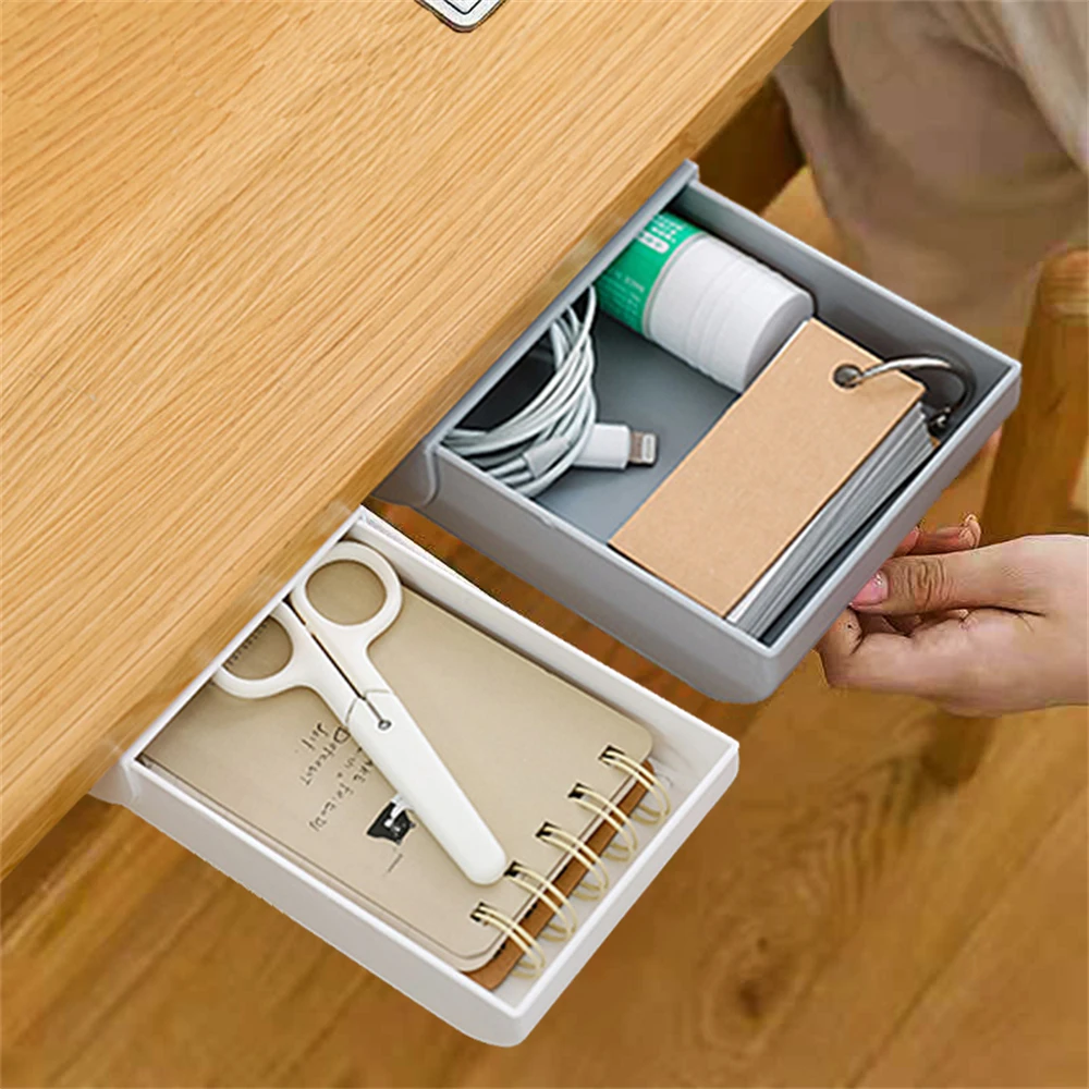 Самоклеящаяся подставка под стол, поднос для карандашей, скрытый канцелярский органайзер для офиса, домашнего макияжа, искусственная коробка