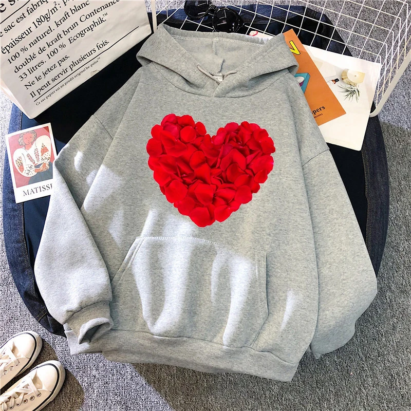 Женские толстовки Harajuku с розой, Зимние толстовки с цветочным пр...