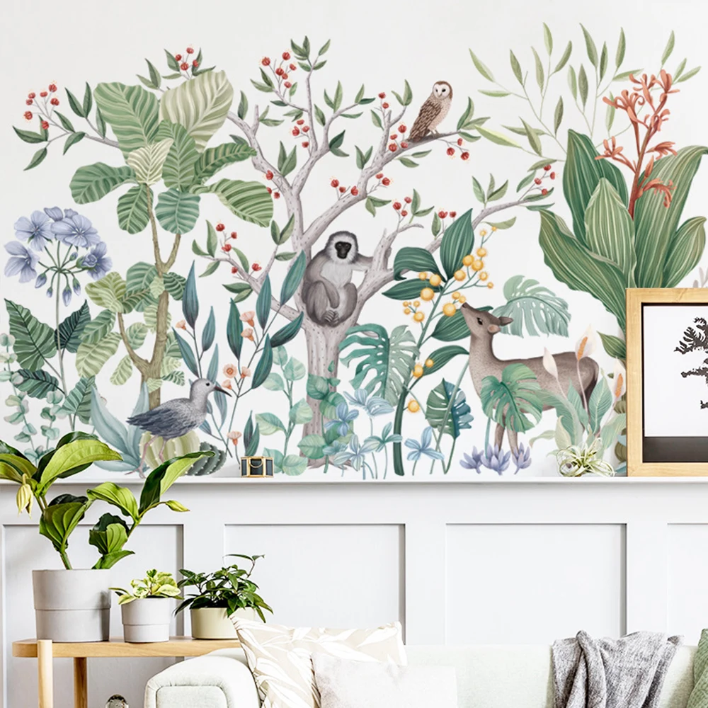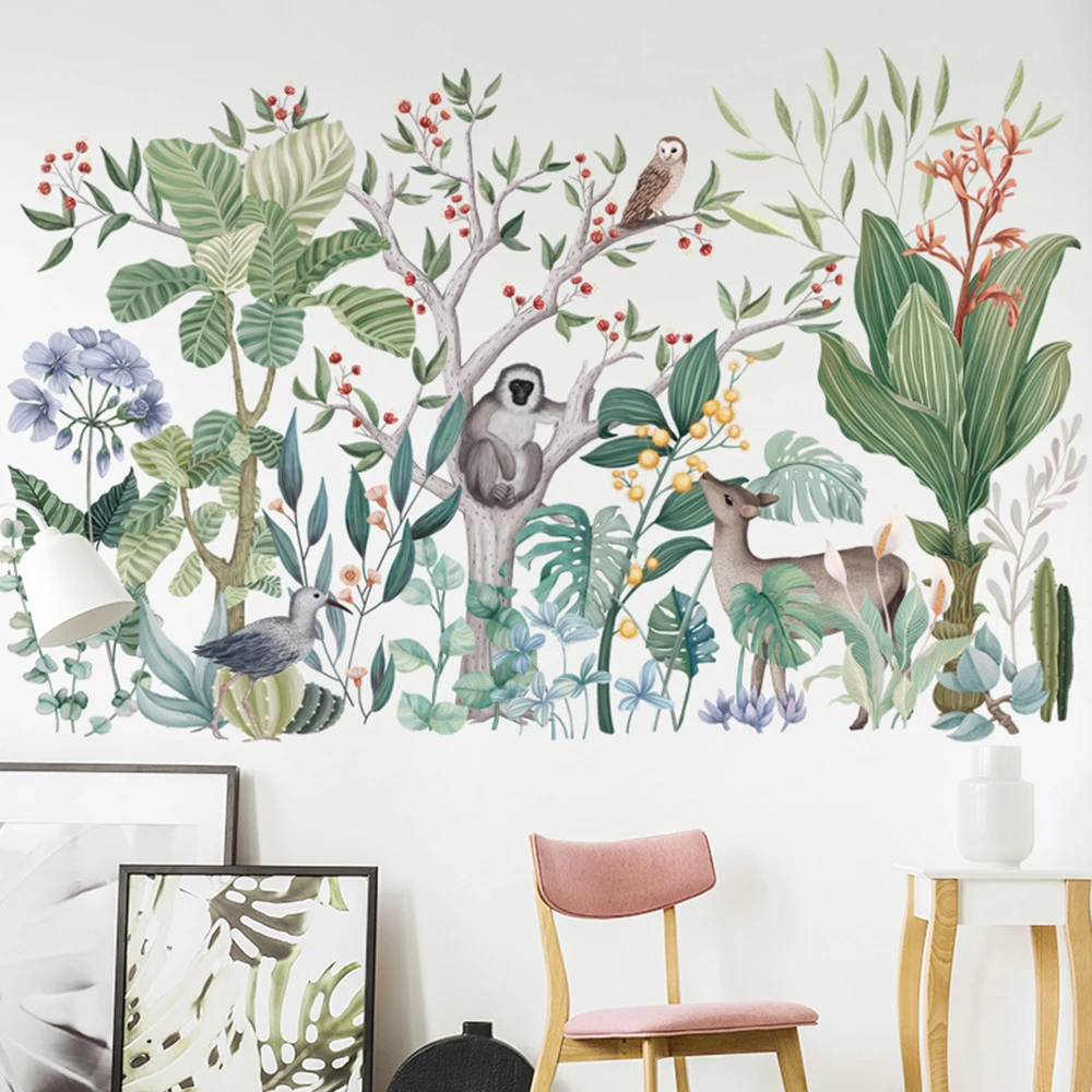 Большой Лес животных Зебра обезьяна Пальма дерево наклейки для дома Питомник обои украшение большой Жираф наклейки на стену для детских комнат