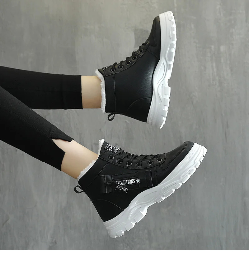 Зимние ботинки, женские зимние ботинки 2022, модная черная, белая кожаная обувь на платформе, женские ботильоны, Женские теплые меховые повседневные кроссовки
