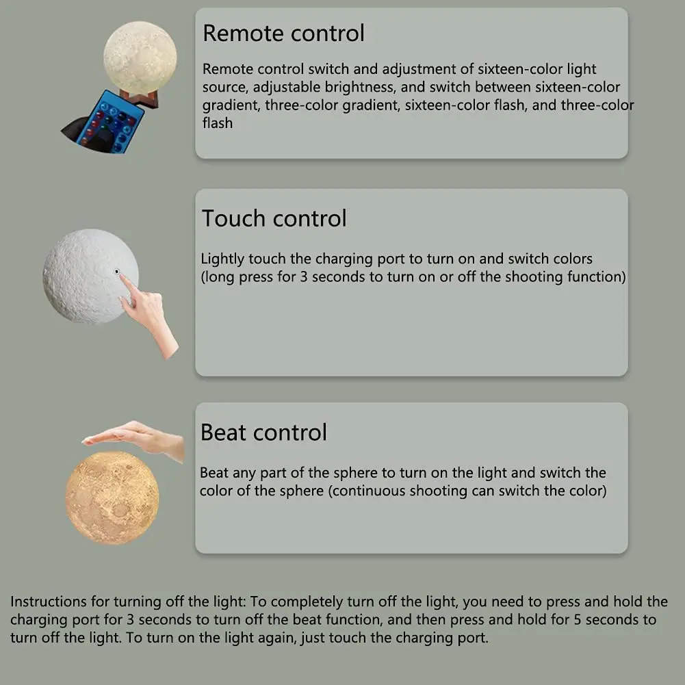 Светильник с 3D-принтом «Луна» удовлетворит все ваши потребности в украшении и воплотит вашу мечту в реальность. Вы можете выбрать 3 цвета и 4 режима мигания.